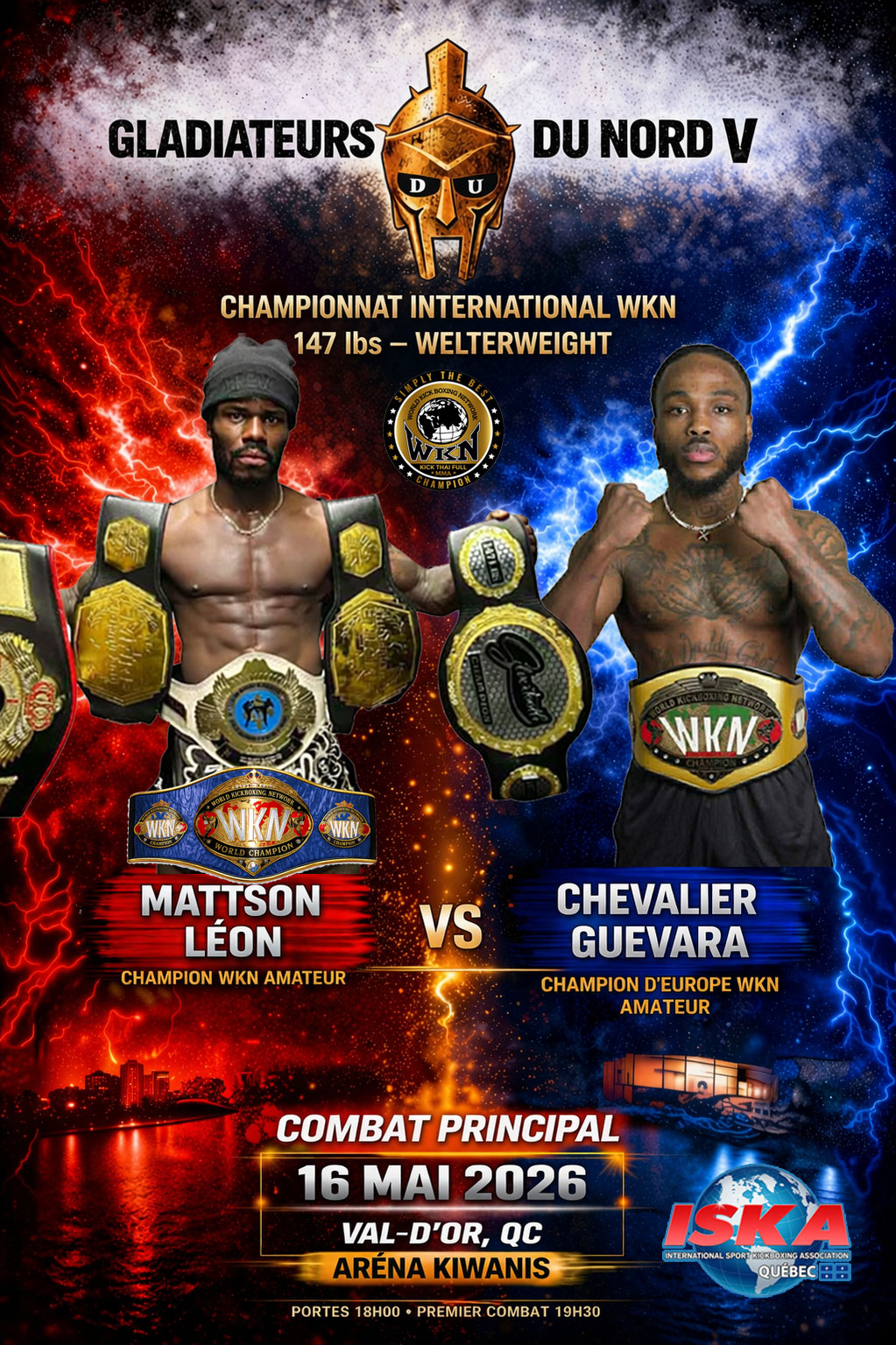 Gladiateurs du Nord V En vedette mai 16 @ 7:00 pm - 11:00 pm EDT Aréna KIWANIS 810 6e Av.,Val-d'Or,Québec,Canada L’événement Kick‑Boxing & K1 qui fera vibrer Val‑d’Or Le 16 mai 2026, Val‑d’Or deviendra le centre de gravité des sports de combat. […] Get Tickets $50.00 – $80.00 886 tickets left